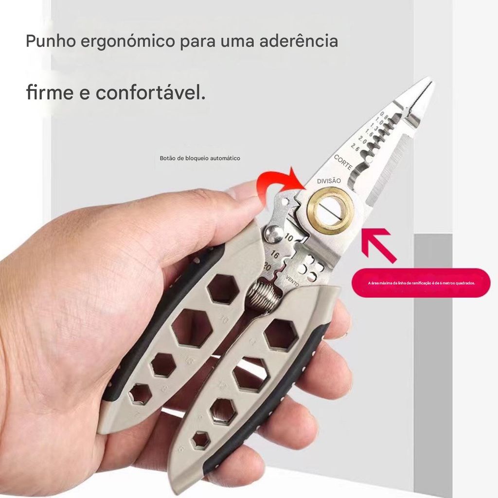 Desencapador de Fios Multifuncional de 7 Polegadas — Uma Ferramenta Especializada para Eletricistas: Cortar, Desencapar, Crimpar, Enrolar e Aparafusar